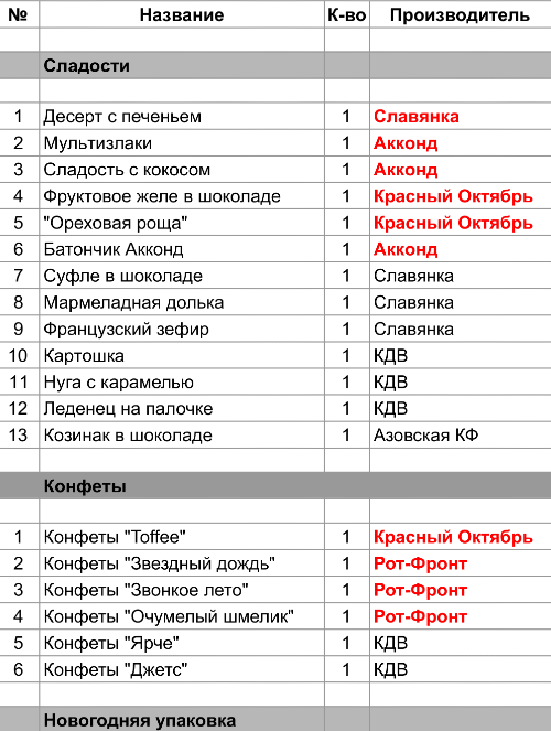 1. Проверить, можно ли внести изменения в состав подарка. Если нет, то скорее всего наборы были собраны еще летом из конфет, произведенных еще раньше